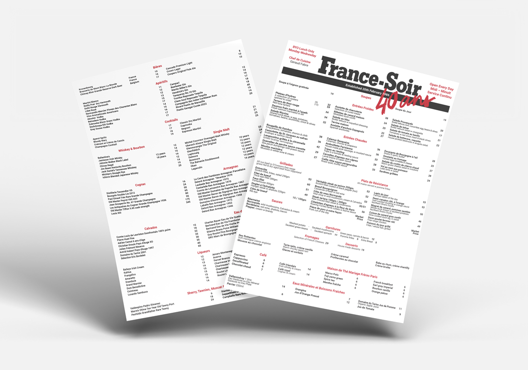 France-Soir – Menu Design & Promotional Collateral